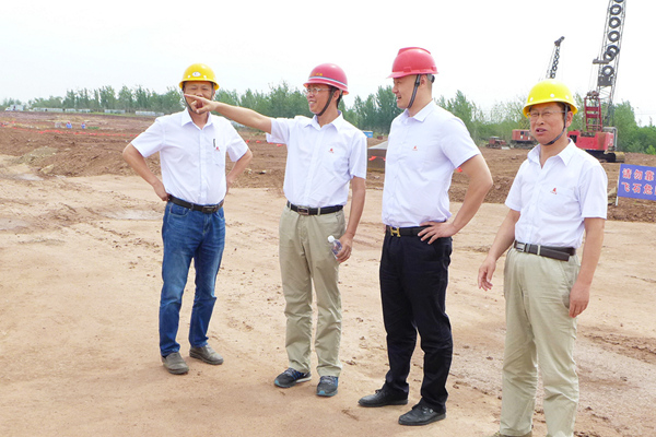 6月8日,公司董事長帶隊,到該項目現(xiàn)場檢查指導工作。董事長一行在認真巡查工程施工情況后在現(xiàn)場召開現(xiàn)場會。沈董指出:工程開始以來,項目部工作搞得比較好,大家付出很多。這個項目搞好了,關(guān)系到國家利益,意義重大,一定要精心組織、精心施工。對現(xiàn)場發(fā)現(xiàn)的車輛照明等安全隱患要及時消滅在萌芽之中。夏季到來要特別注意防暑降溫工作,搞好職工生活注意飲食衛(wèi)生......。