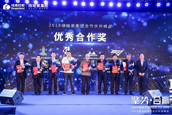 祝賀戰(zhàn)略合作伙伴綠地泉集團授予公司優(yōu)秀合作獎