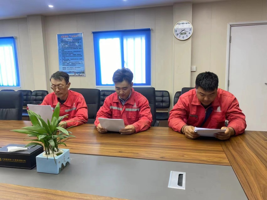 巖土分公司青島上合廣場指揮部學(xué)習(xí)傳達(dá)生產(chǎn)會精神。