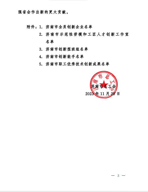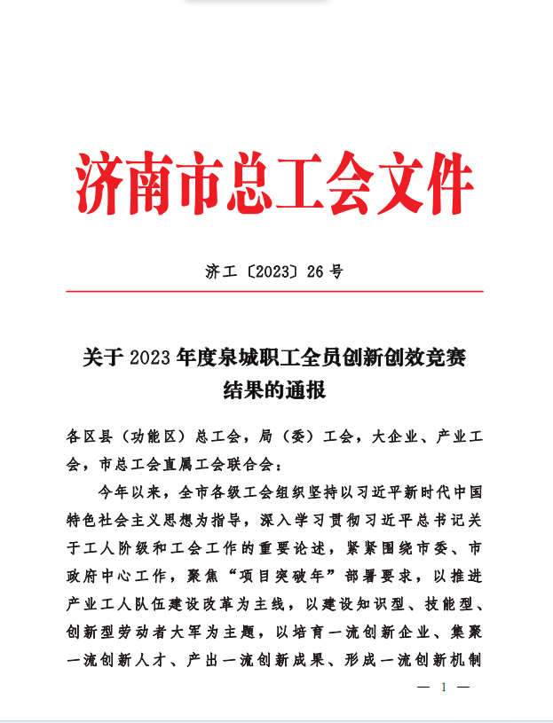 喜報|山東省機械施工有限公司研發(fā)的新技術被評選為濟南市職工優(yōu)秀技術創(chuàng)新成果二等獎