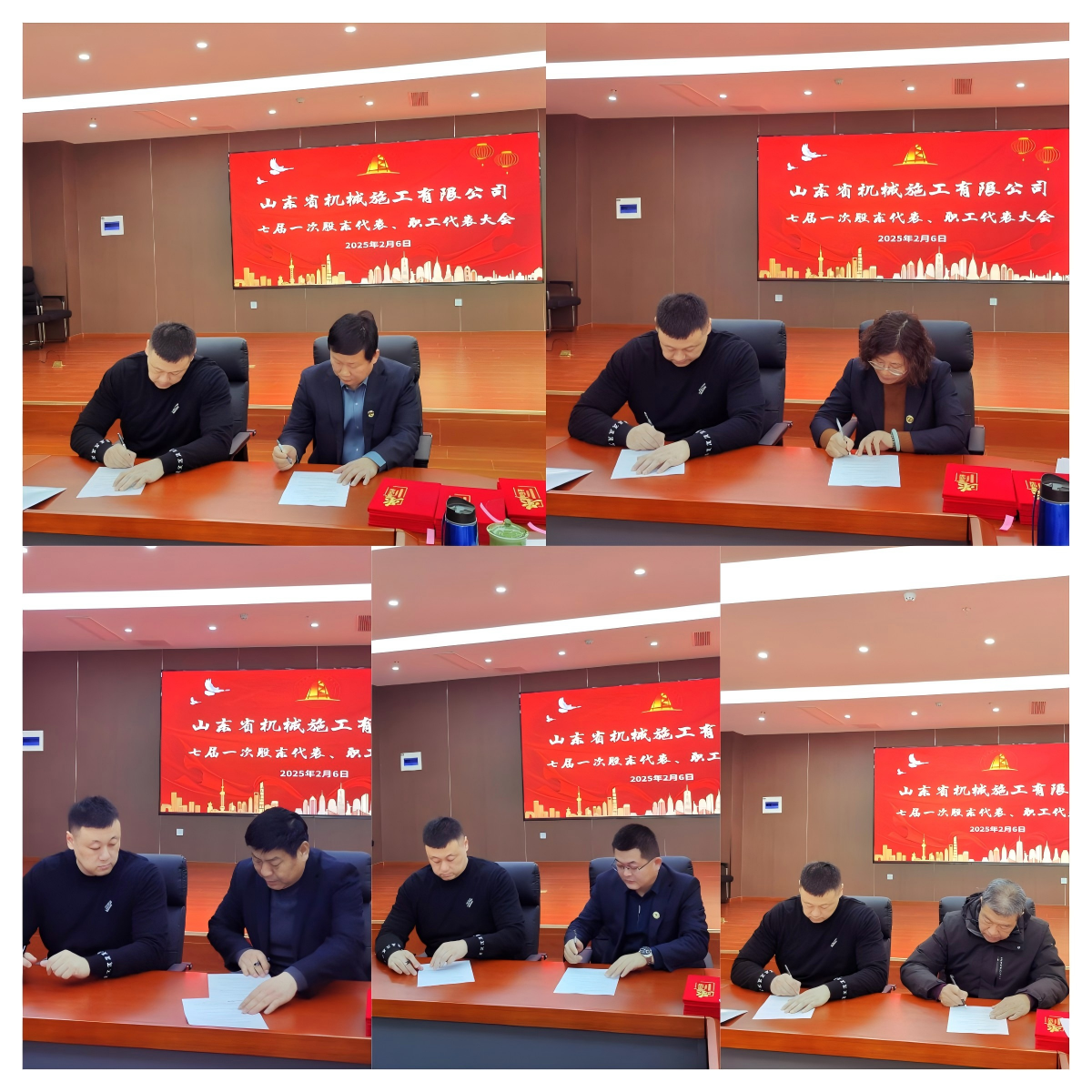 2025年2月6日,山東省機(jī)械施工有限公司七屆一次股東代表、職工代表大會(huì)在公司會(huì)議室召開。公司股東代表、職工代表、先模代表近30余人參會(huì)。會(huì)議審議通過了董事長行政工作報(bào)告、監(jiān)事報(bào)告、財(cái)務(wù)預(yù)決算報(bào)告等事項(xiàng);會(huì)上沈繽董事長與各承包人簽訂2025年承包合同;表彰了2024年度先進(jìn)單位和個(gè)人;動(dòng)員全體職工在新的一年統(tǒng)一思想、堅(jiān)定信心、再創(chuàng)佳績,為努力開創(chuàng)山東機(jī)施各項(xiàng)工作新局面做出更大的貢獻(xiàn)。